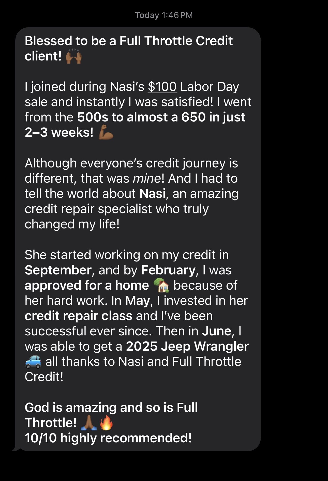 People come to Full Throttle University to learn how to build stronger credit and prepare for funding. Our clients appreciate the clarity, honesty, and results that come from real education and step by step guidance.